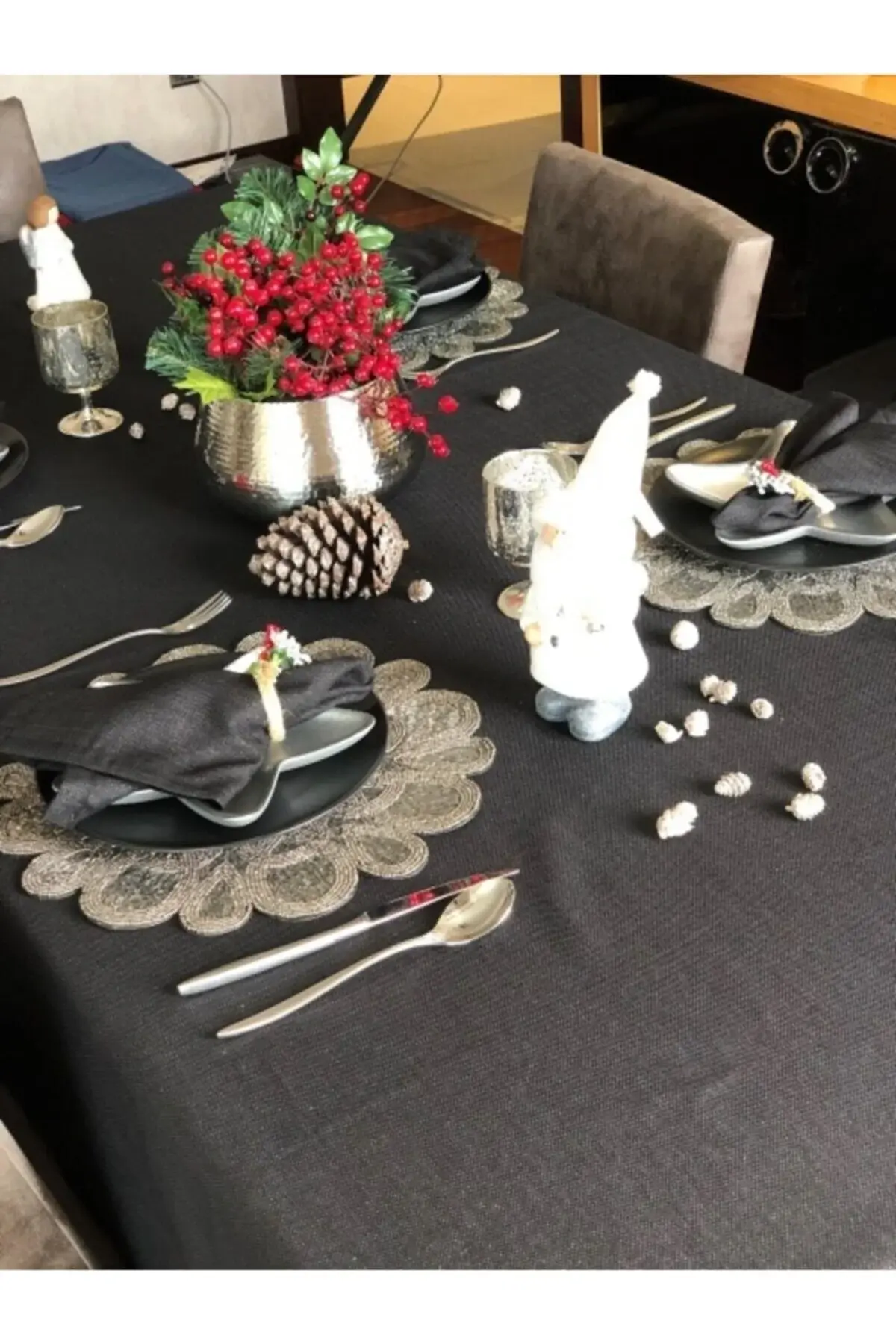 Linen Keten Simli Siyah Masa Örtüsü 150x220cm