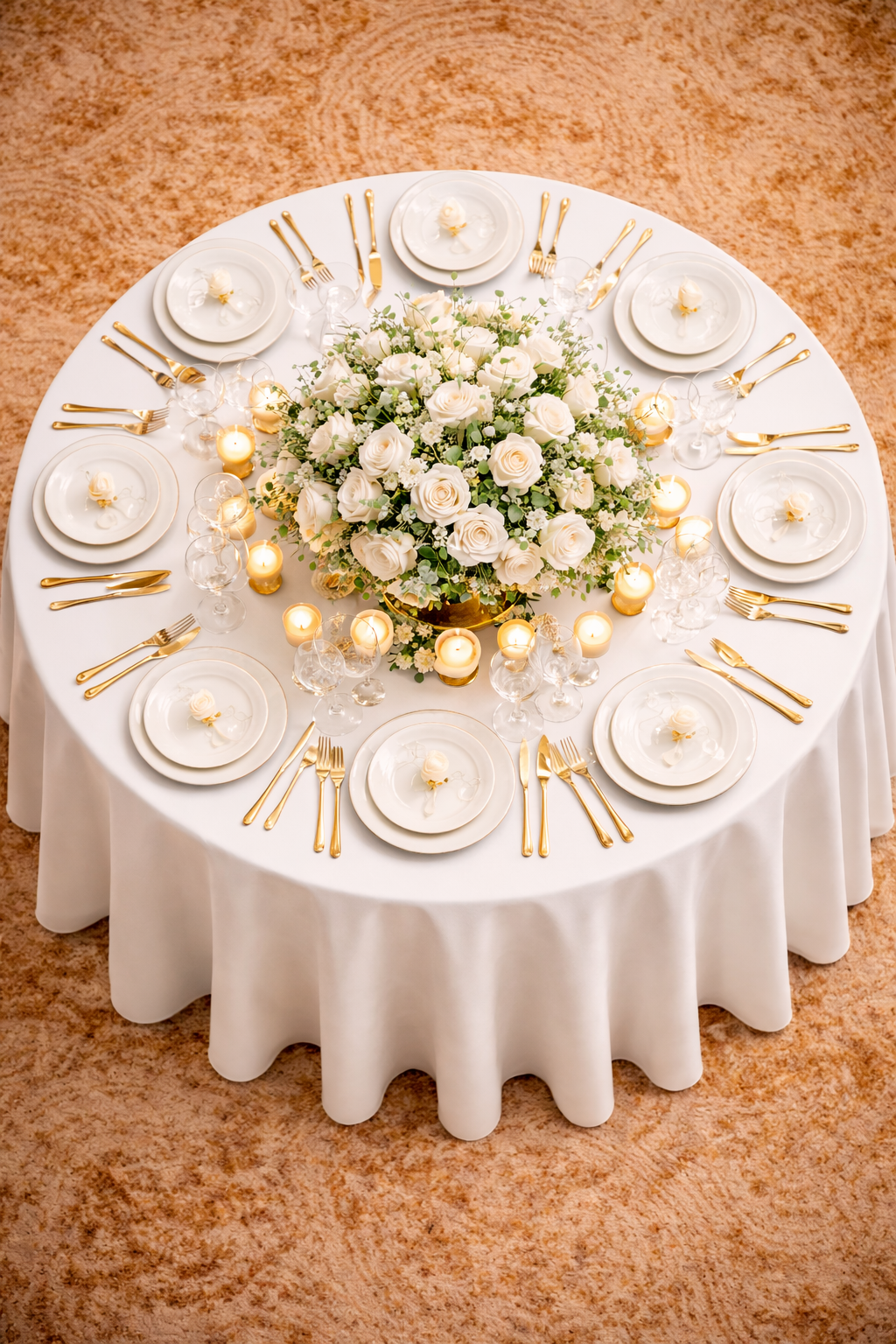Düğün, nişan, kına, davet, otel organizasyonları ve özel günlerde rahatlıkla kullanılabilir. Düğün salonları, restoranlar, etkinlik alanları ve ev dekorasyonunda sade ama etkileyici bir masa sunumu oluşturur.