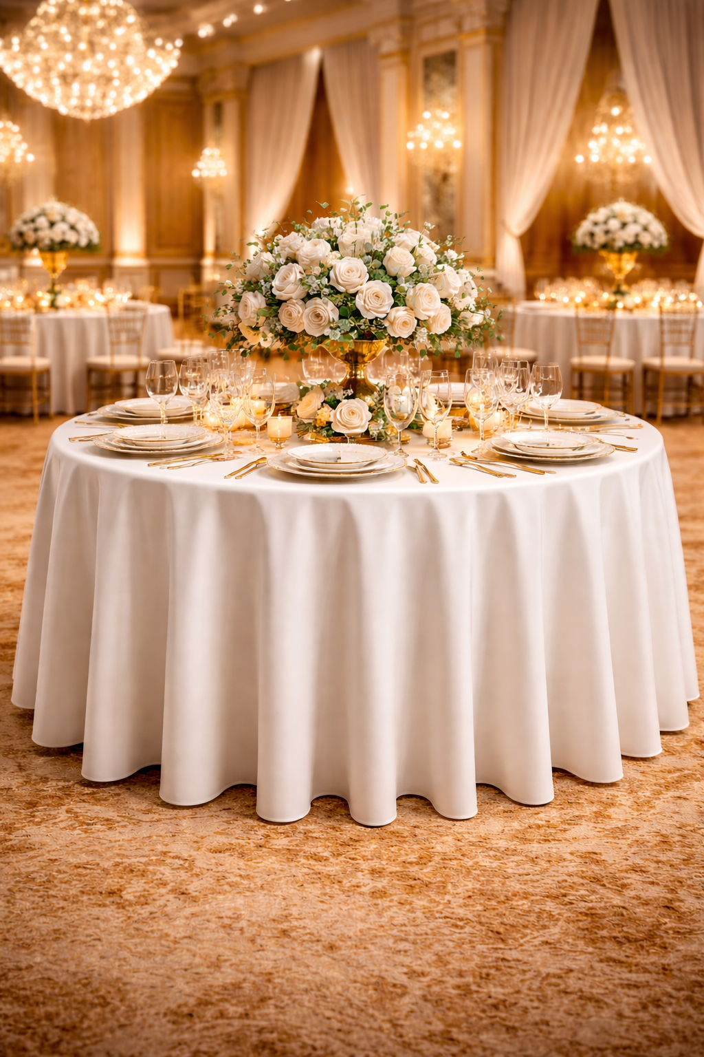 Mekânlarınıza değer katacak ve organizasyonlarınıza profesyonel bir dokunuş sağlayacak bu özel tasarım yuvarlak masa örtüsü ile fark yaratın.